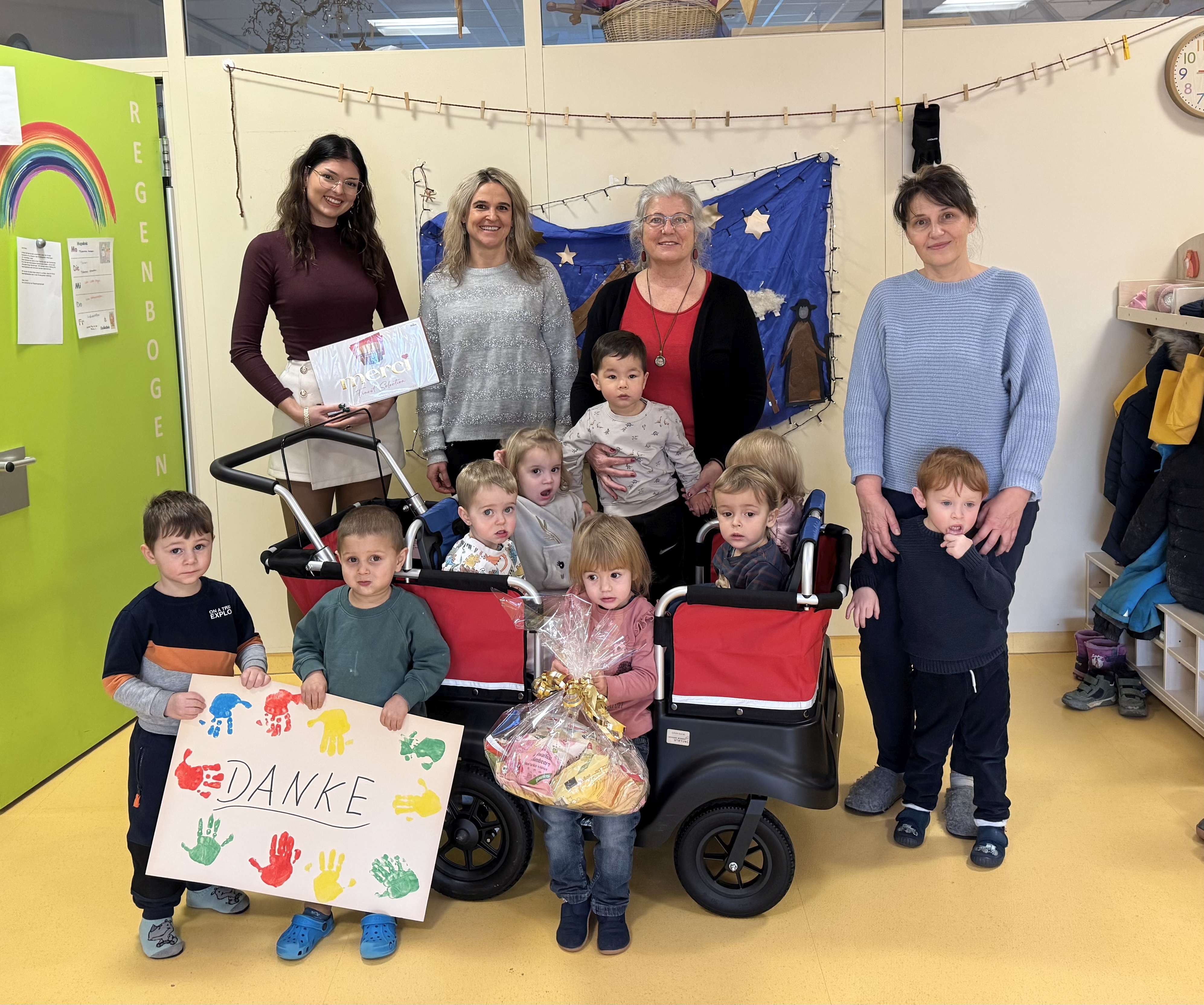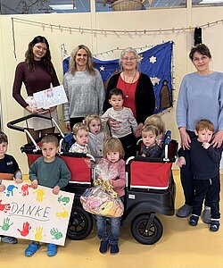 Wir haben uns sehr gefreut, dass unsere Sonnengruppe von der Gerhard-Winker-Stiftung der Firma HEWI einen neuen Krippenwagen erhalten hat. Dank diesem großzügigen Geschenk können unsere Kinder nun gemeinsam auf Ausflügen und Spaziergängen die Welt erkunden, sicher und komfortabel.