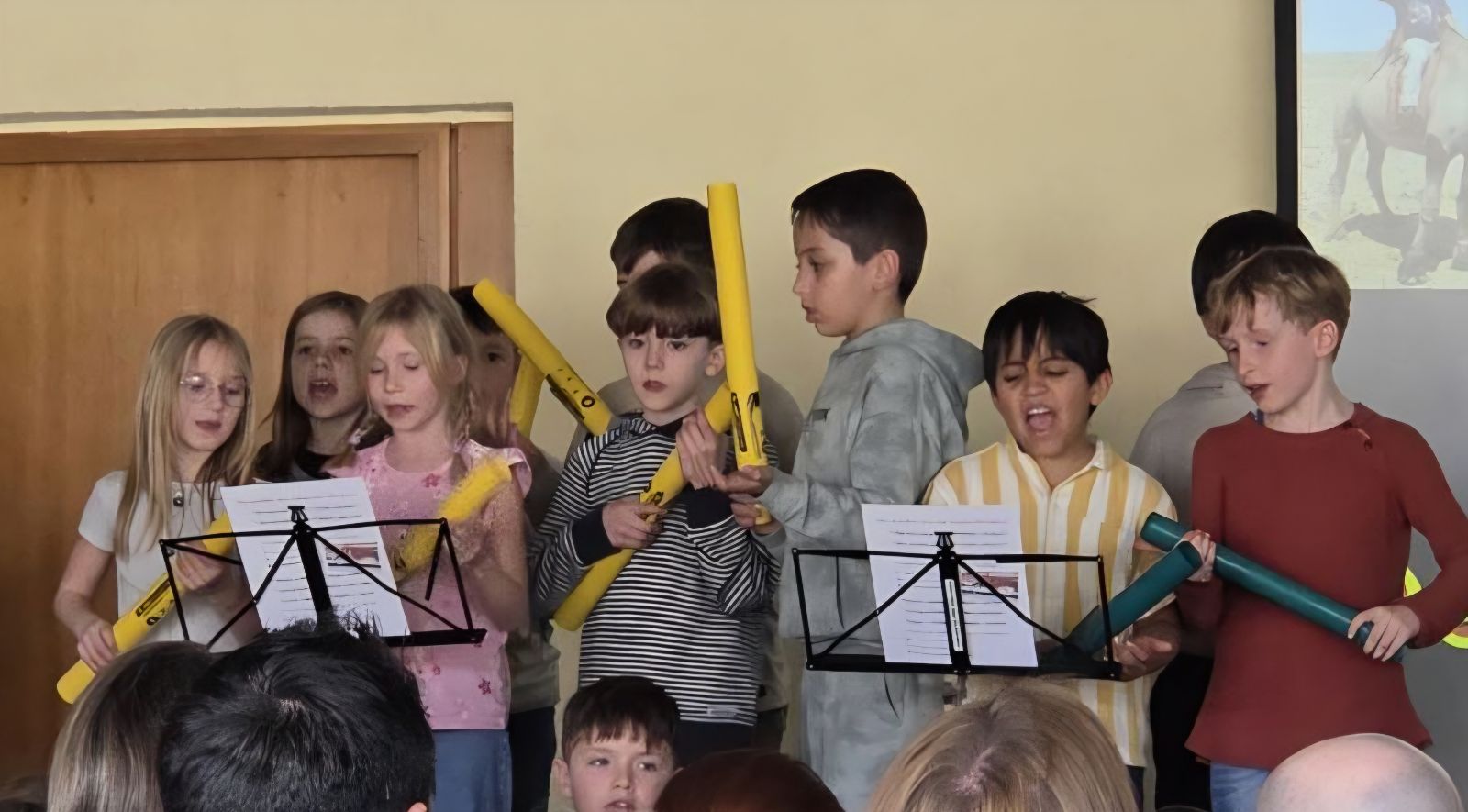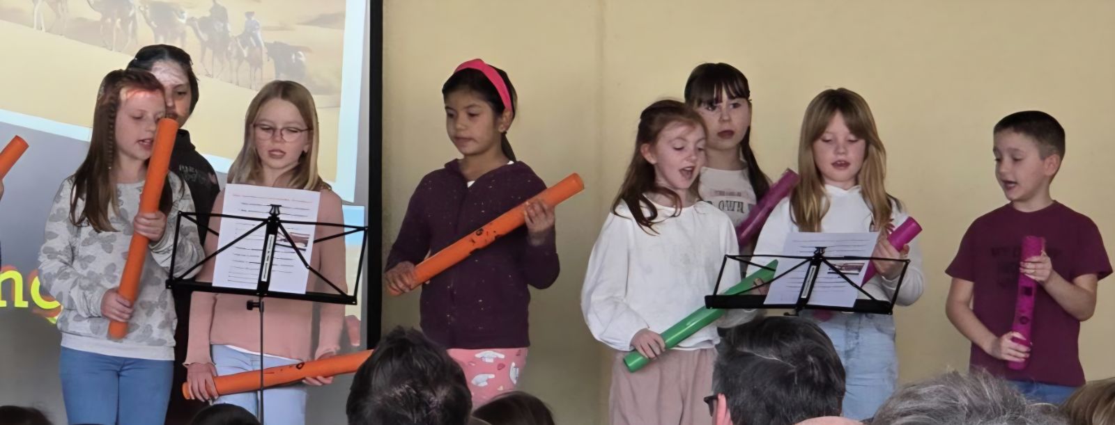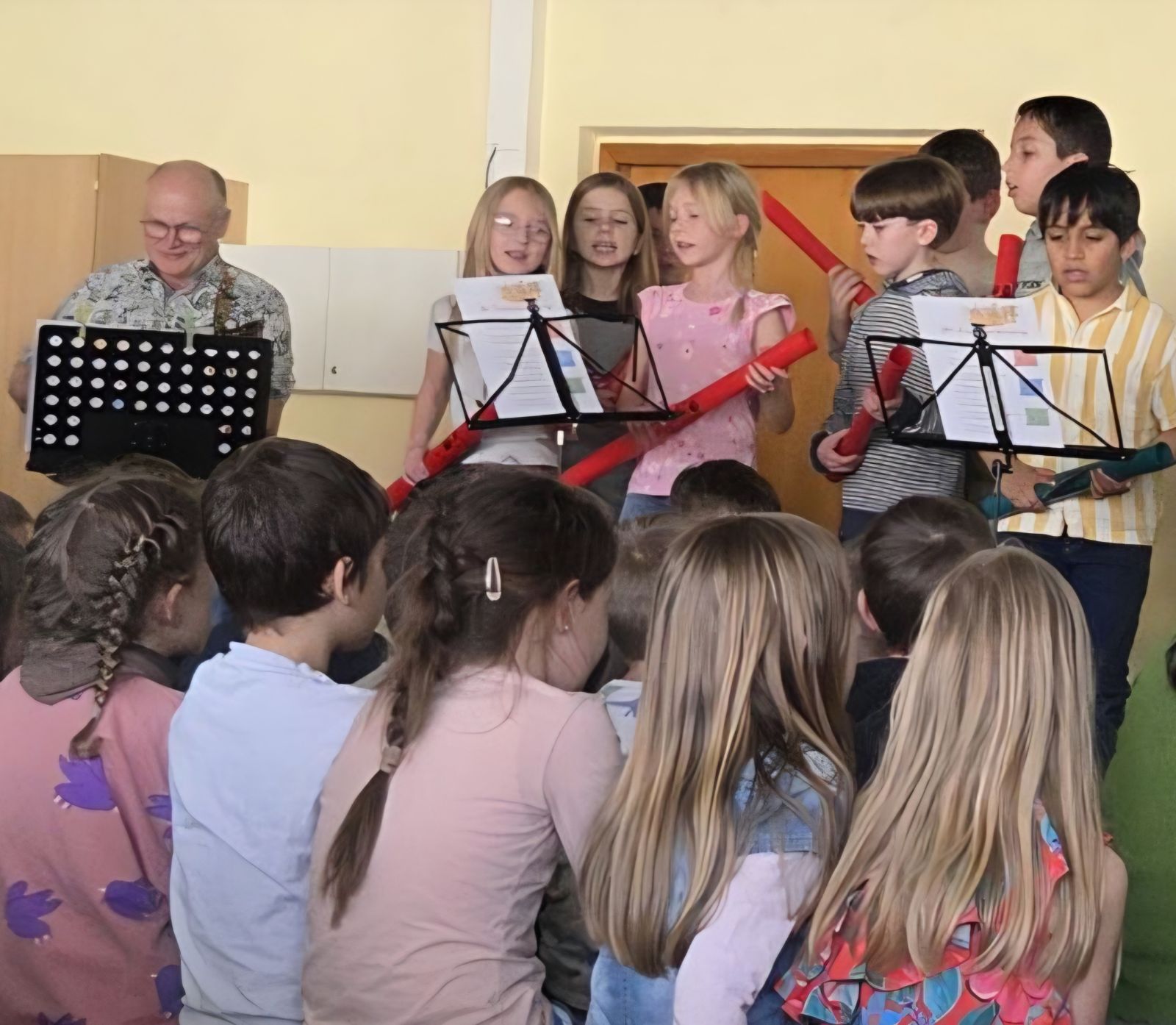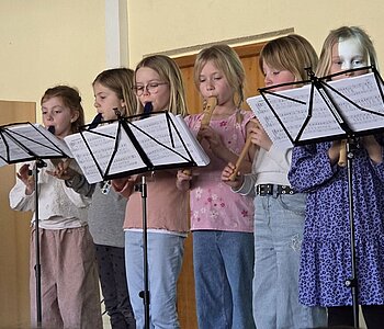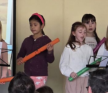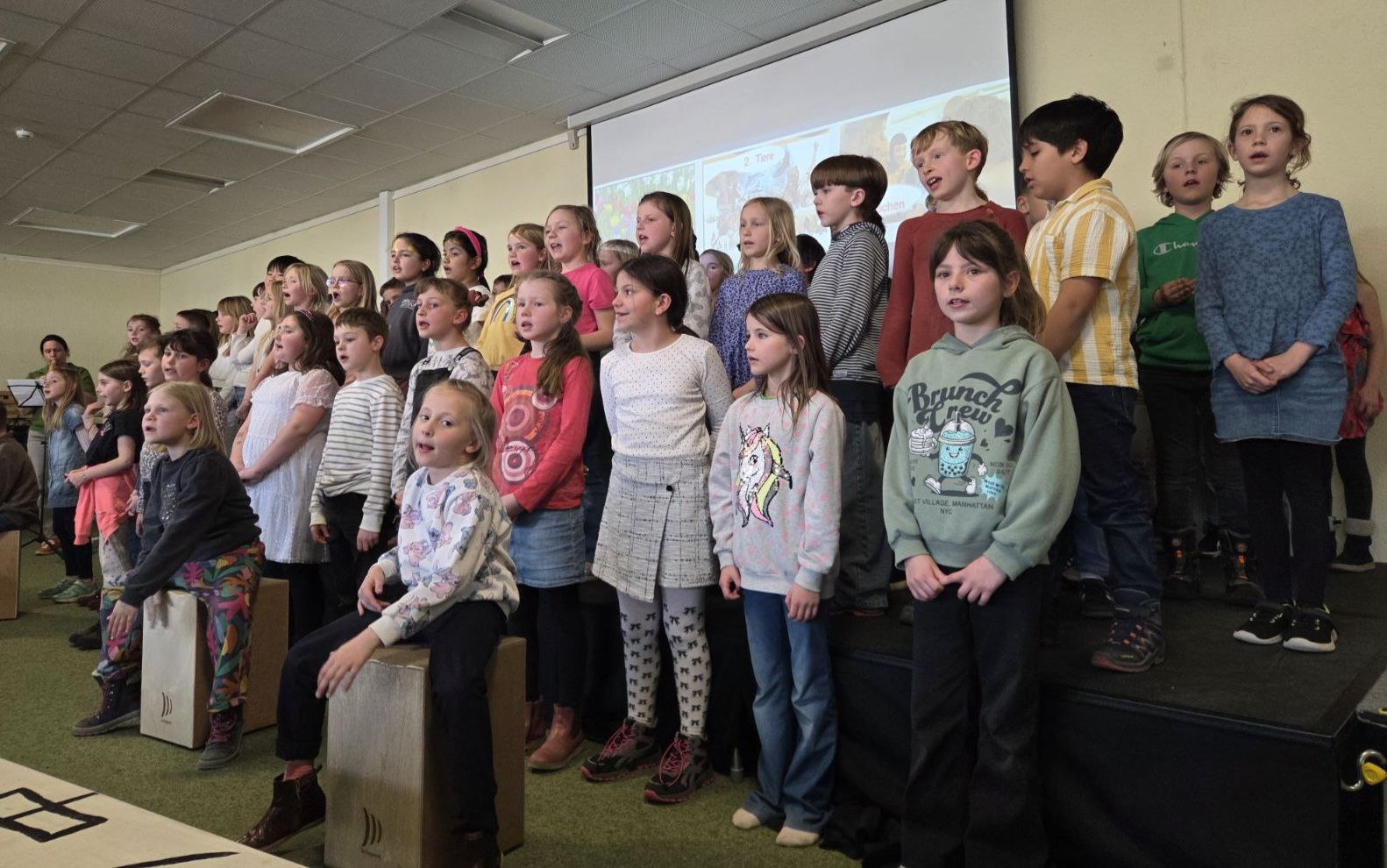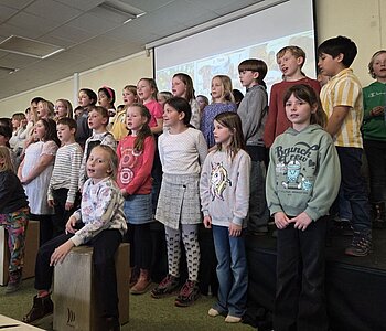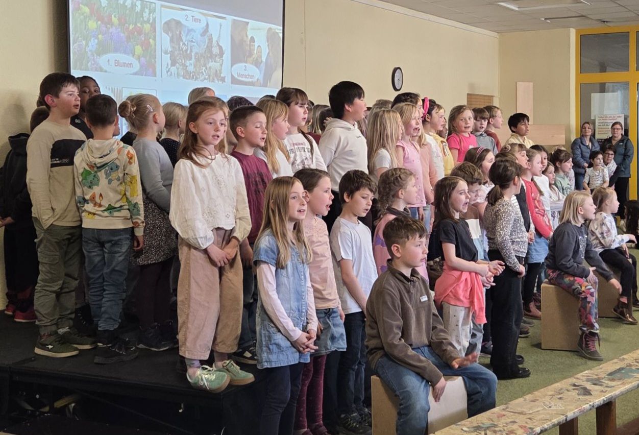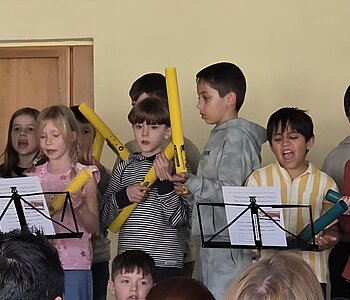 Am 3. März luden die Schülerinnen und Schüler der Klassen 2a, 2b und 2c der Rupert-Mayer-Schule zu einem Musischen Mittag ein. Viele Eltern, Geschwister und Großeltern folgten der Einladung und durften sich auf ein buntes Programm freuen. Die Kinder sangen lustige Lieder über große tickende Uhren, Pippi Langstrumpf und müde Kinder. Dabei begleiteten sie sich selbst mit Boomwhackers, Cajons und Querflöte. Nach gekonnt einstudierten Gedichtsvorträgen, tanzten die Kinder ausgelassen beim Kartoffel-Boogie und zum Klabautermann. Auch die Blockflöten-AG der zweiten Klassen zeigte ihr Können und stimmte mit dem Kuckuck auf den Frühling ein. Zum großen Finale kamen alle Zweitklässler auf die Bühne und verabschiedeten die begeisterten Zuschauer mit dem Lied „Das macht die Welt so wunderbar“.
