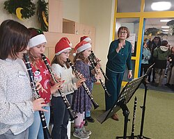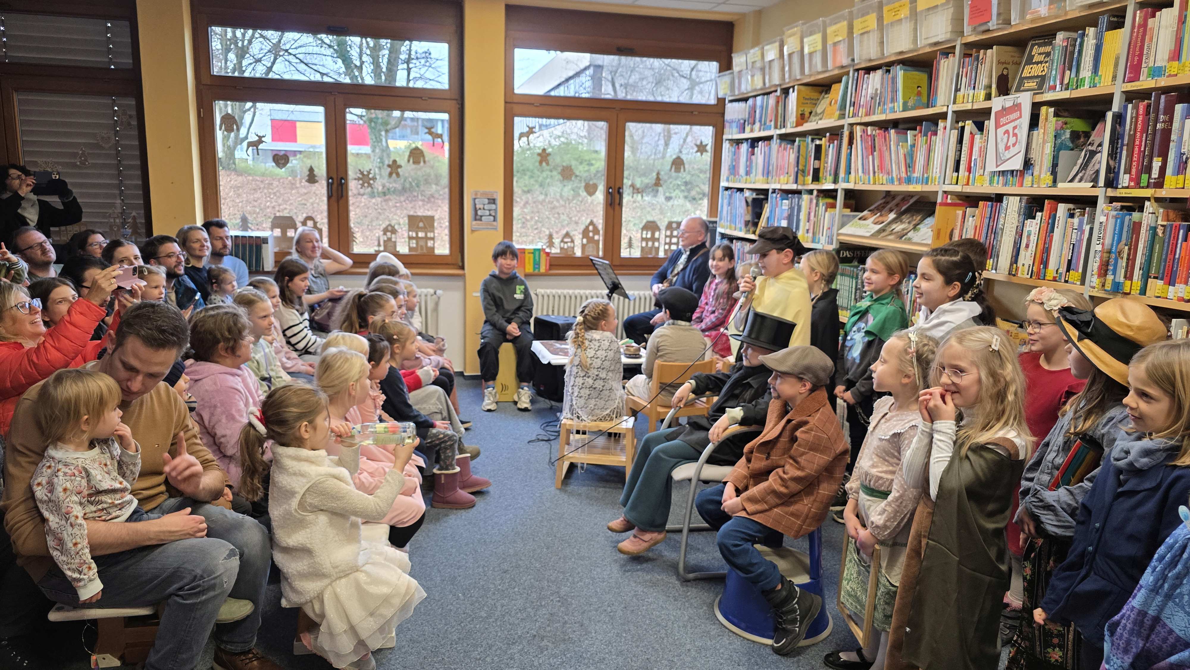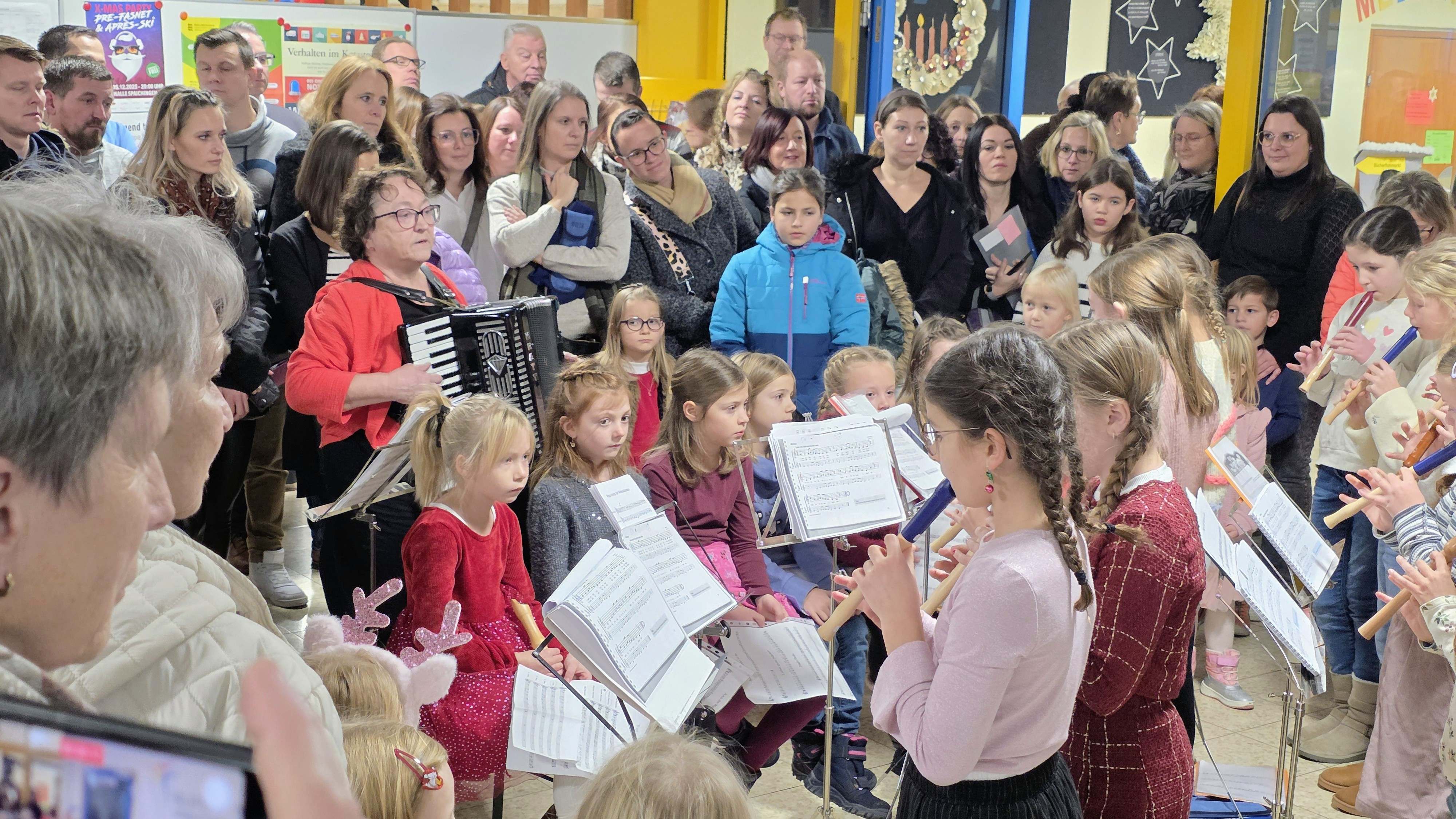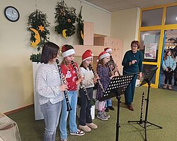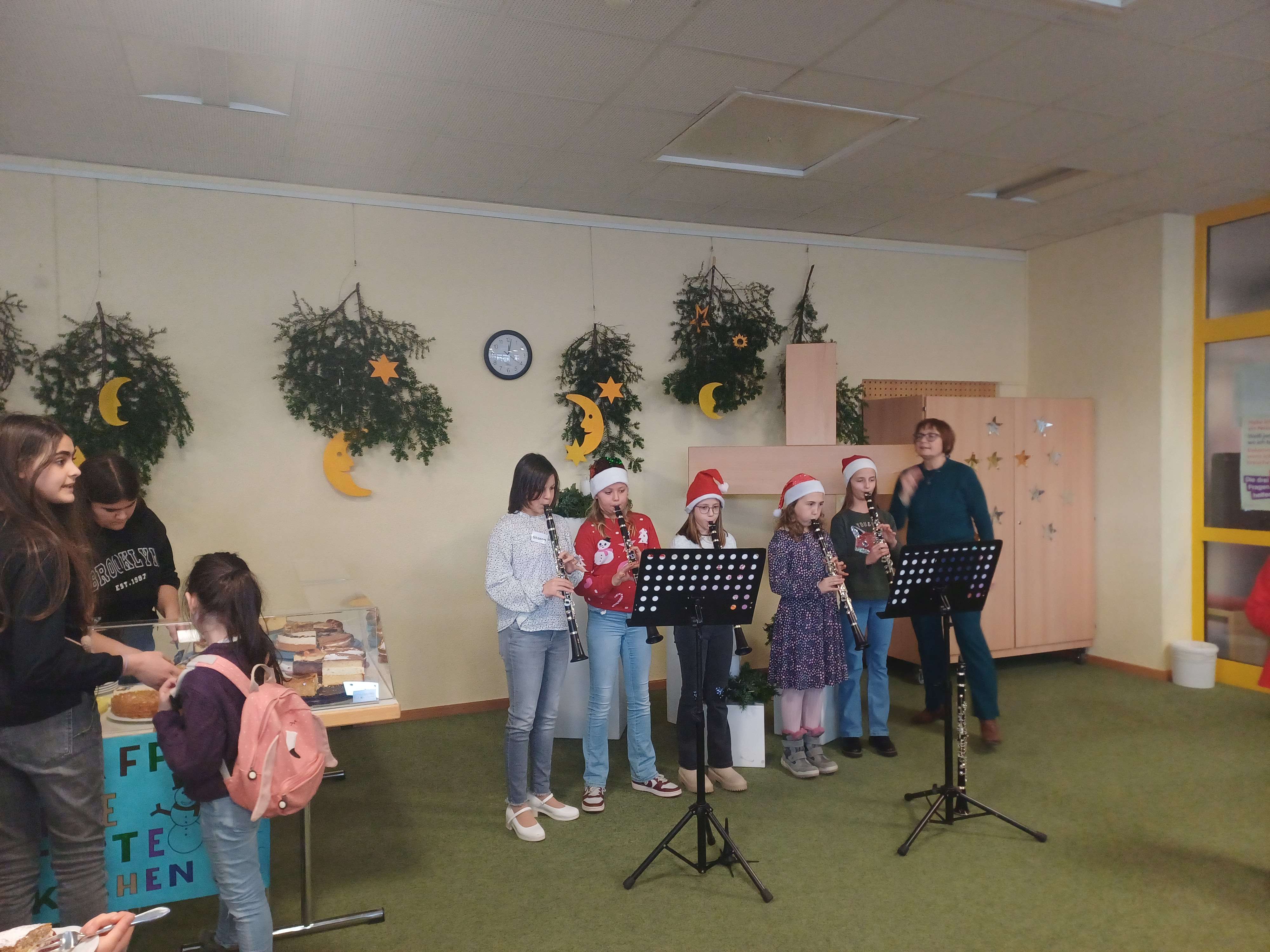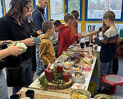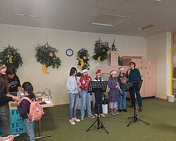 Zahlreiche Aufführungen – darunter die Flöten-AG, das Theaterstück „Scrooge – Ein Weihnachtsmärchen“ der Klasse 2c, Adventslieder der 3c, der Schulchor und die Bläserklasse – sorgten für musikalische und künstlerische Höhepunkte.