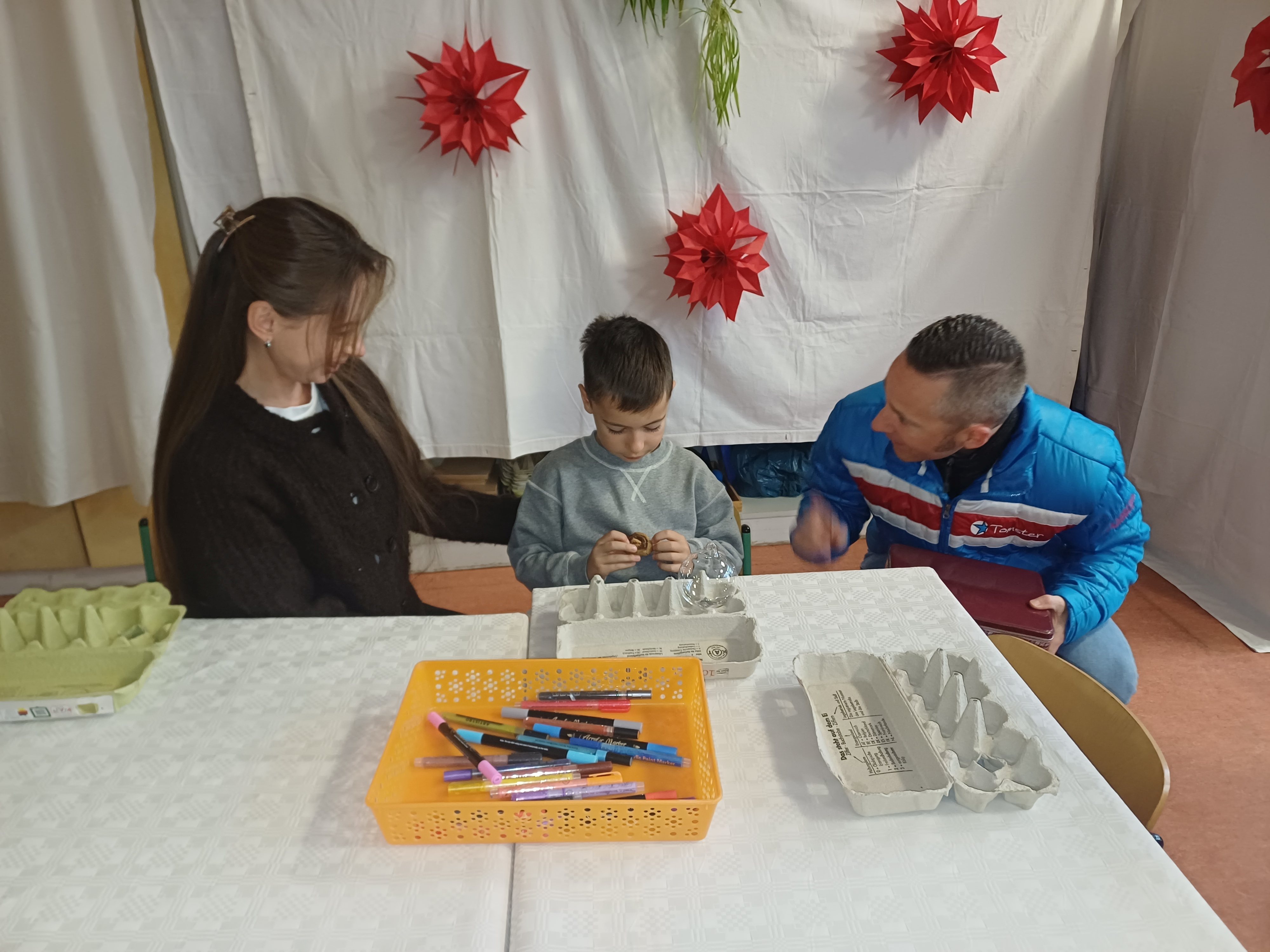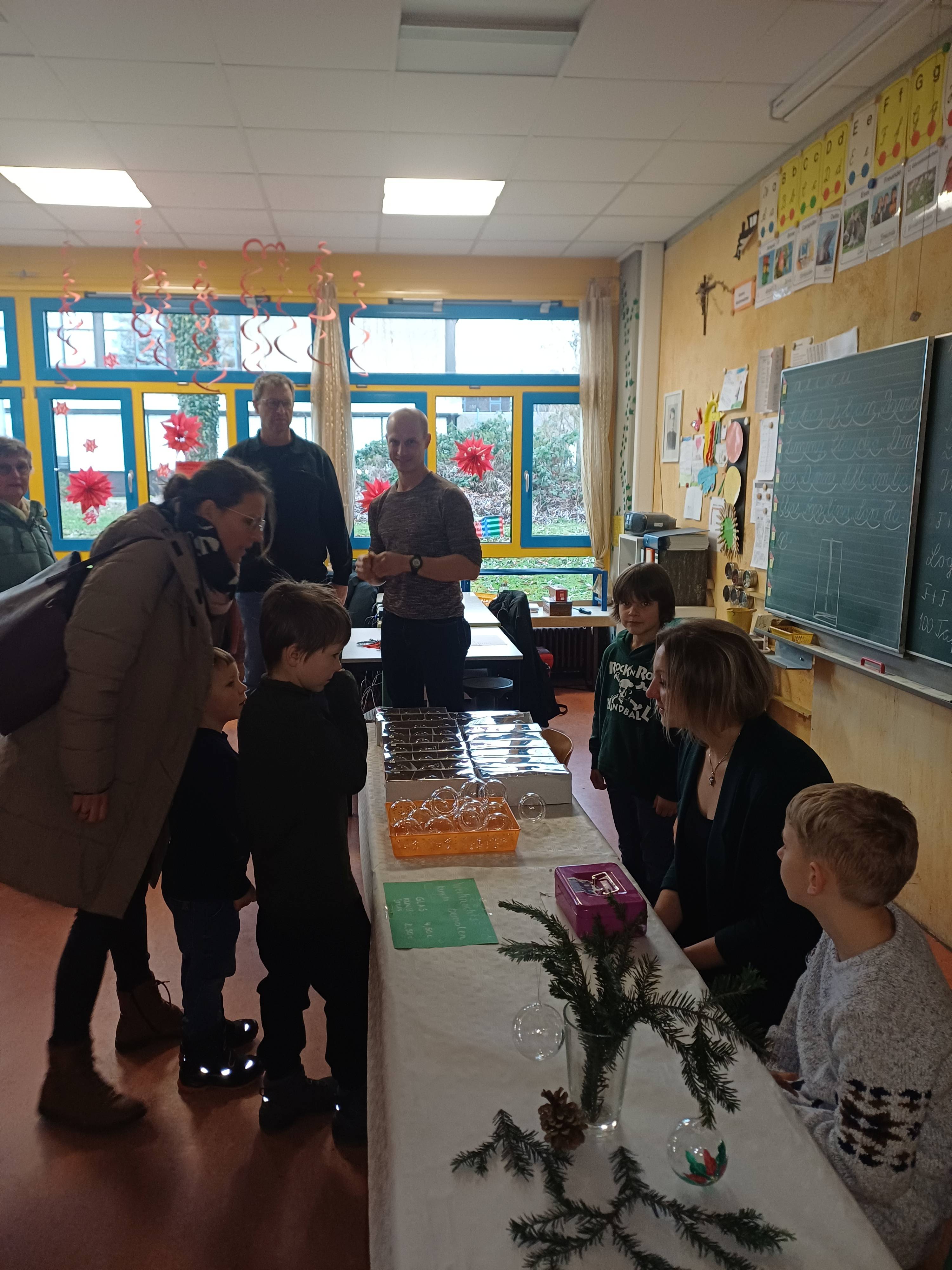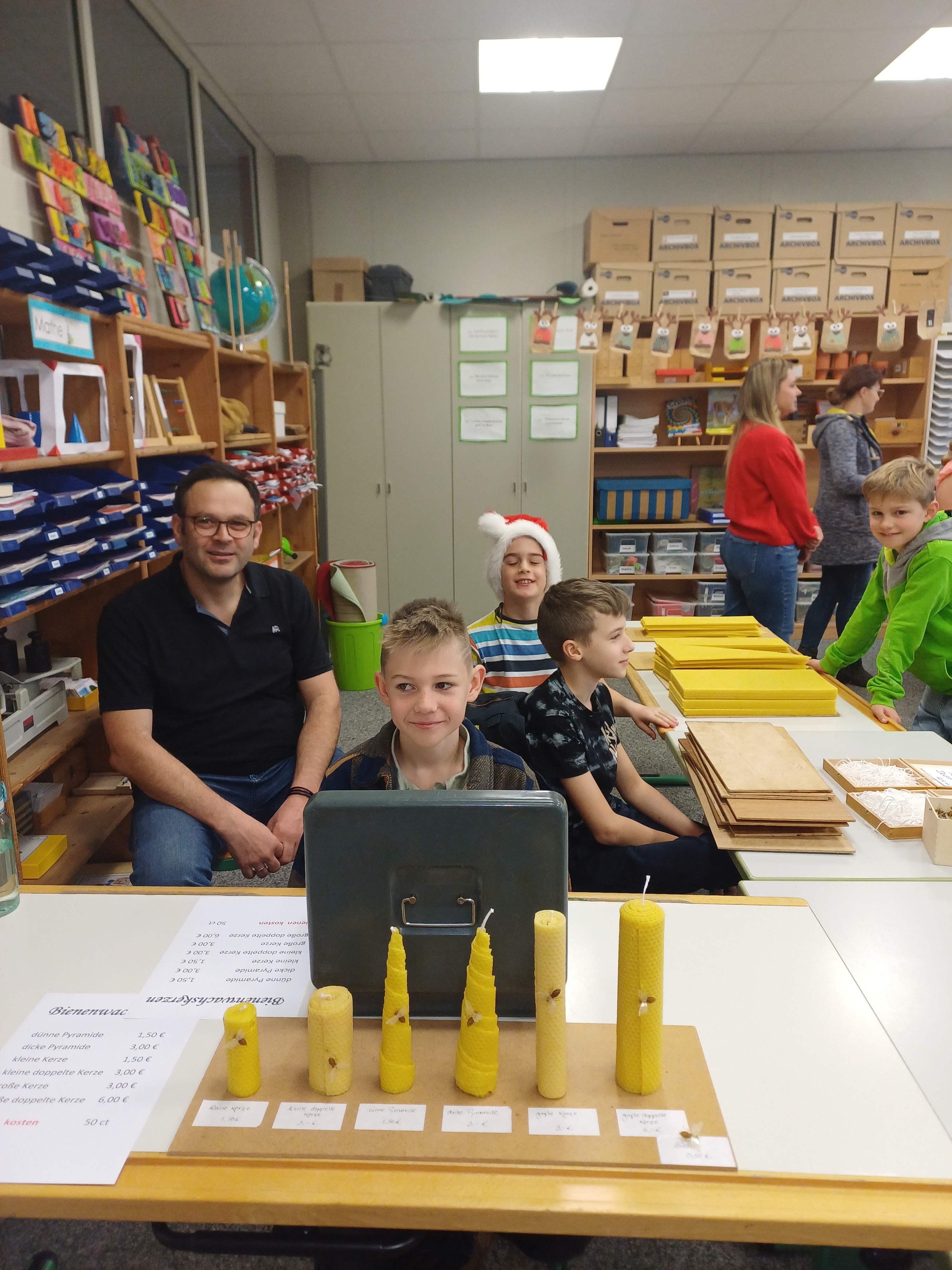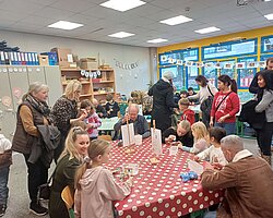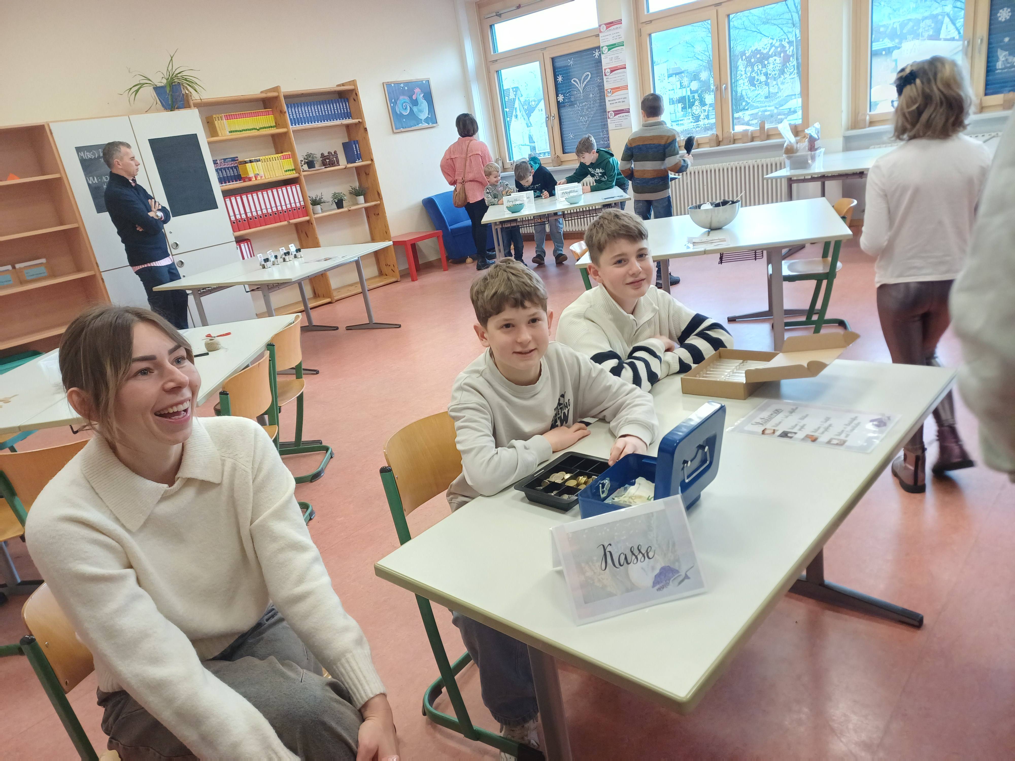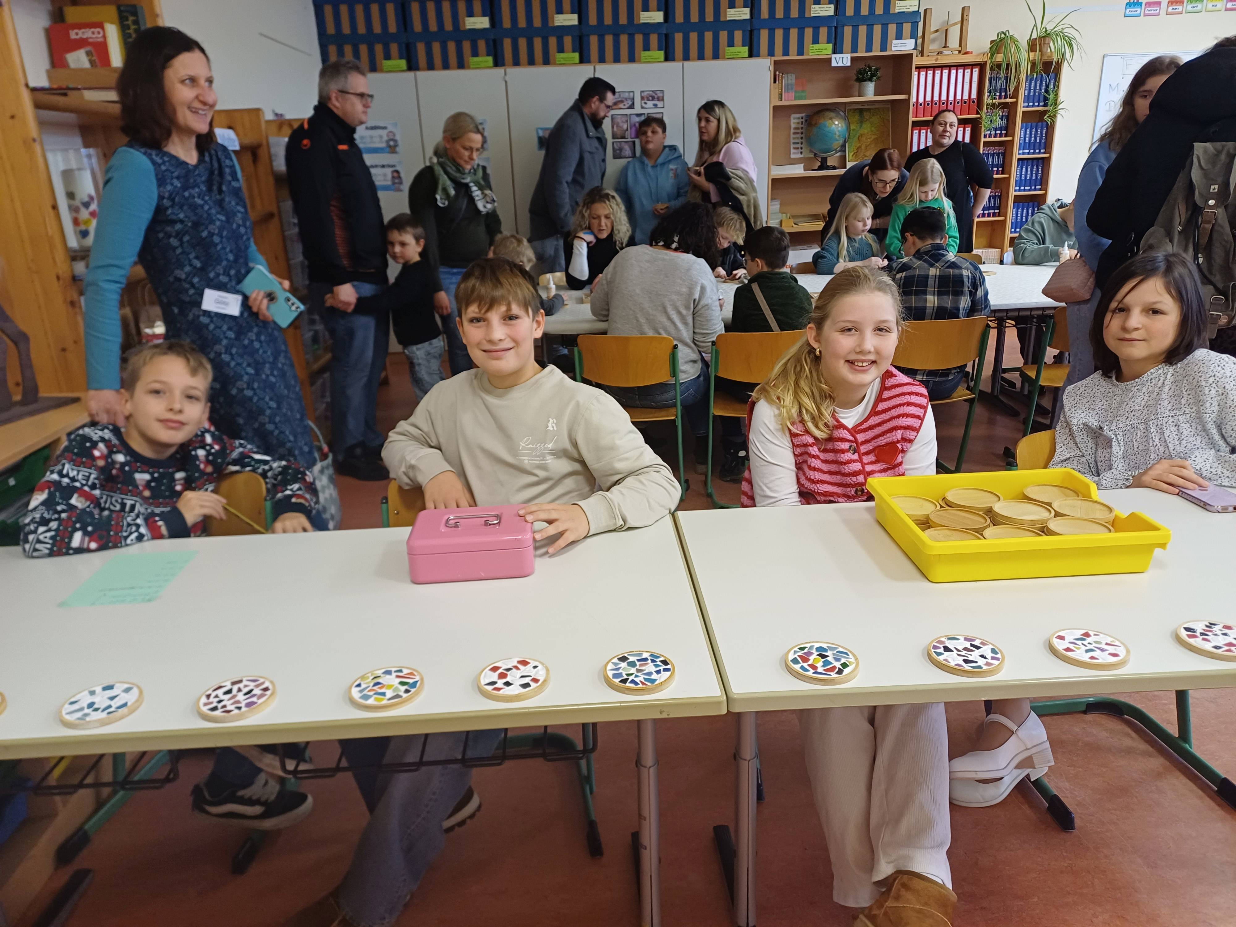 Nach dem Gottesdienst öffneten die Rupert-Mayer-Schule und der Kindergarten die Türen. In den Klassenzimmern der Stufe 1 bis 6 warteten kreative und liebevoll vorbereitete Mitmachangebote: Makramee-Engel, bemalte Glaskugeln, Bienenwachskerzen, Perlensterne, Krippen aus Erdnüssen, Drahttannenbäume, Schneeflocken, Kerzenfärben, selbstgemachtes Badesalz oder bunte Mosaikuntersetzer – Kinder und Erwachsene konnten ihrer Fantasie freien Lauf lassen. Für die Jüngsten gab es Kinderbetreuung, für Leseratten einen Bücherflohmarkt.