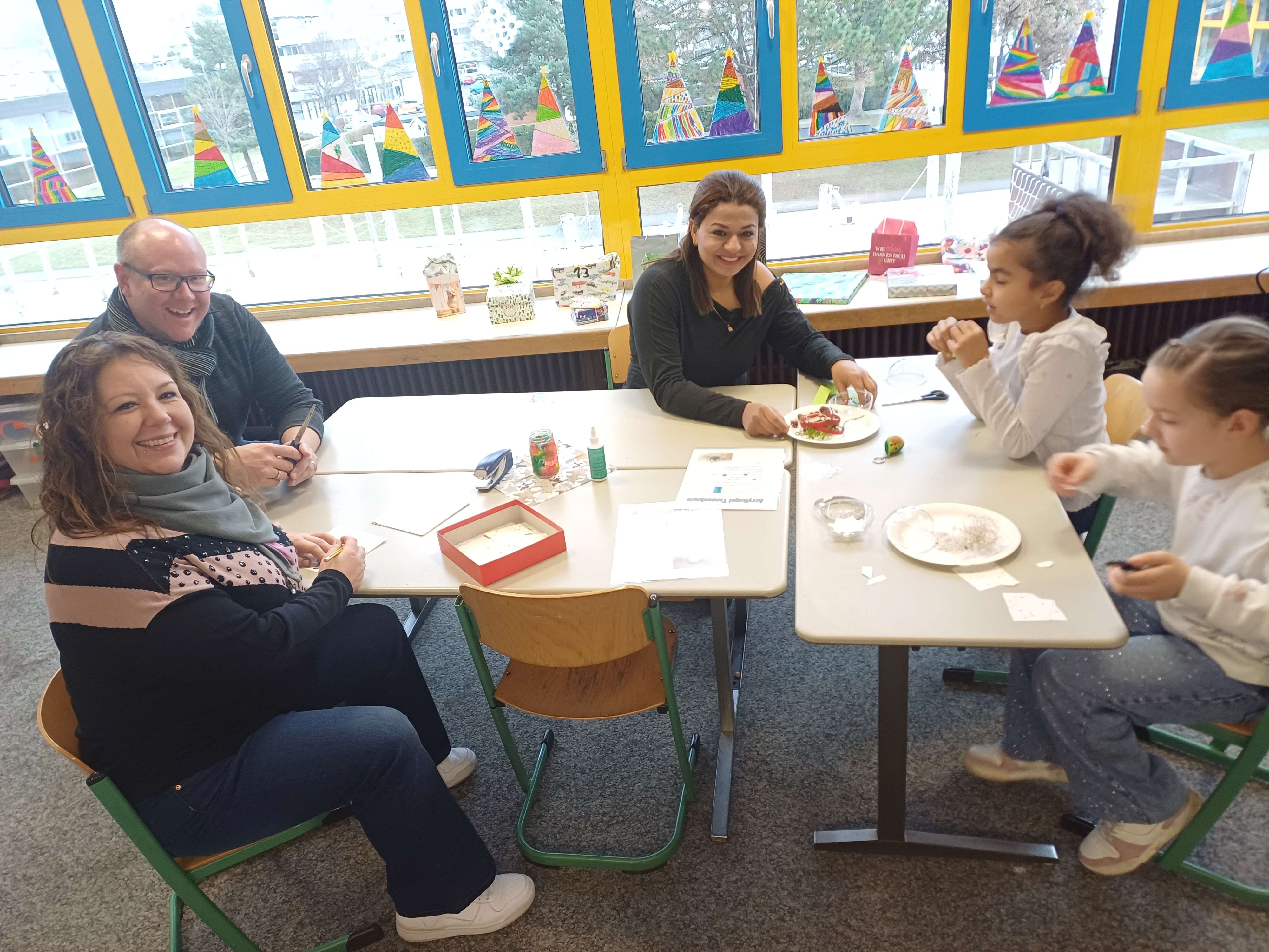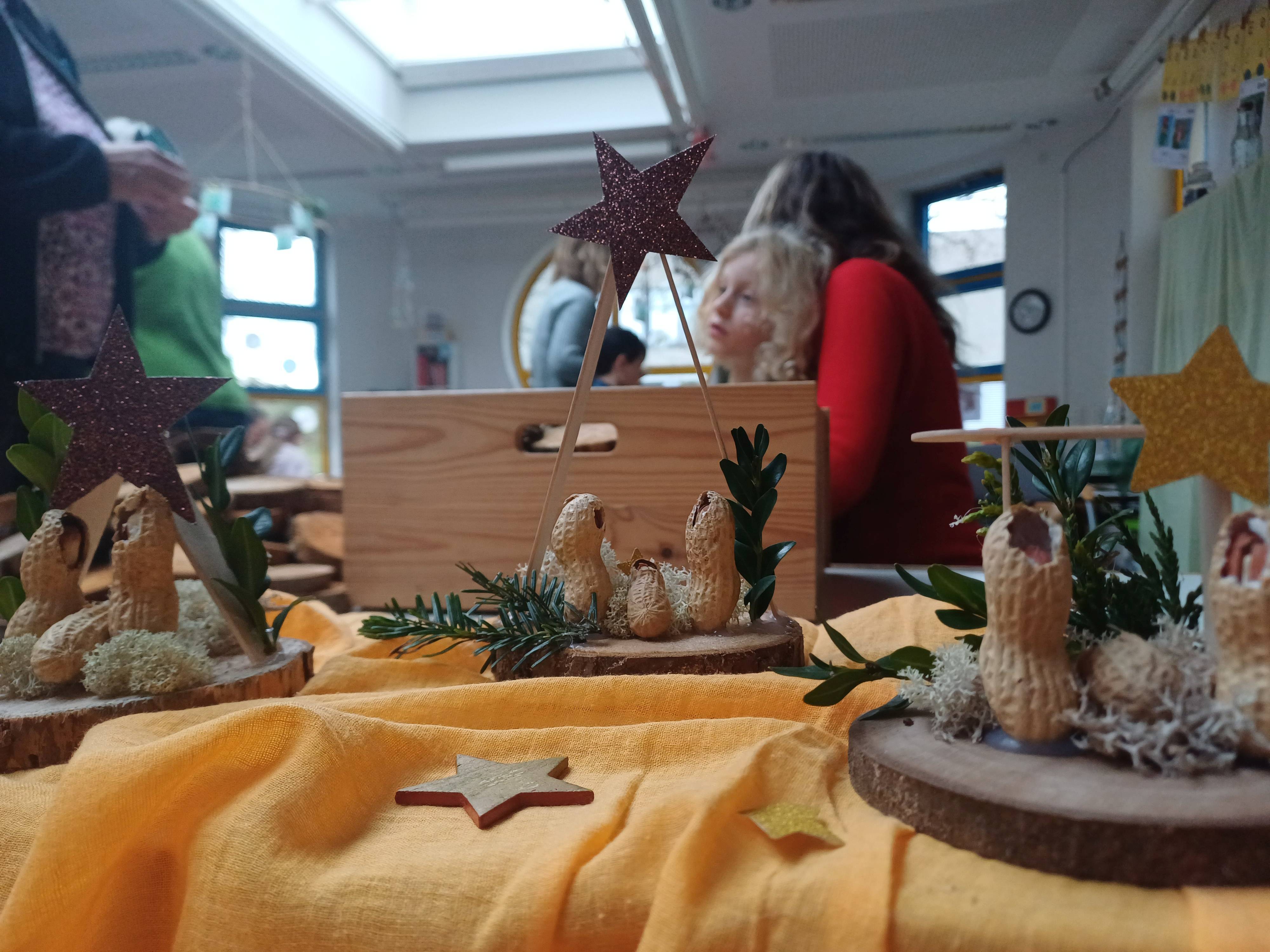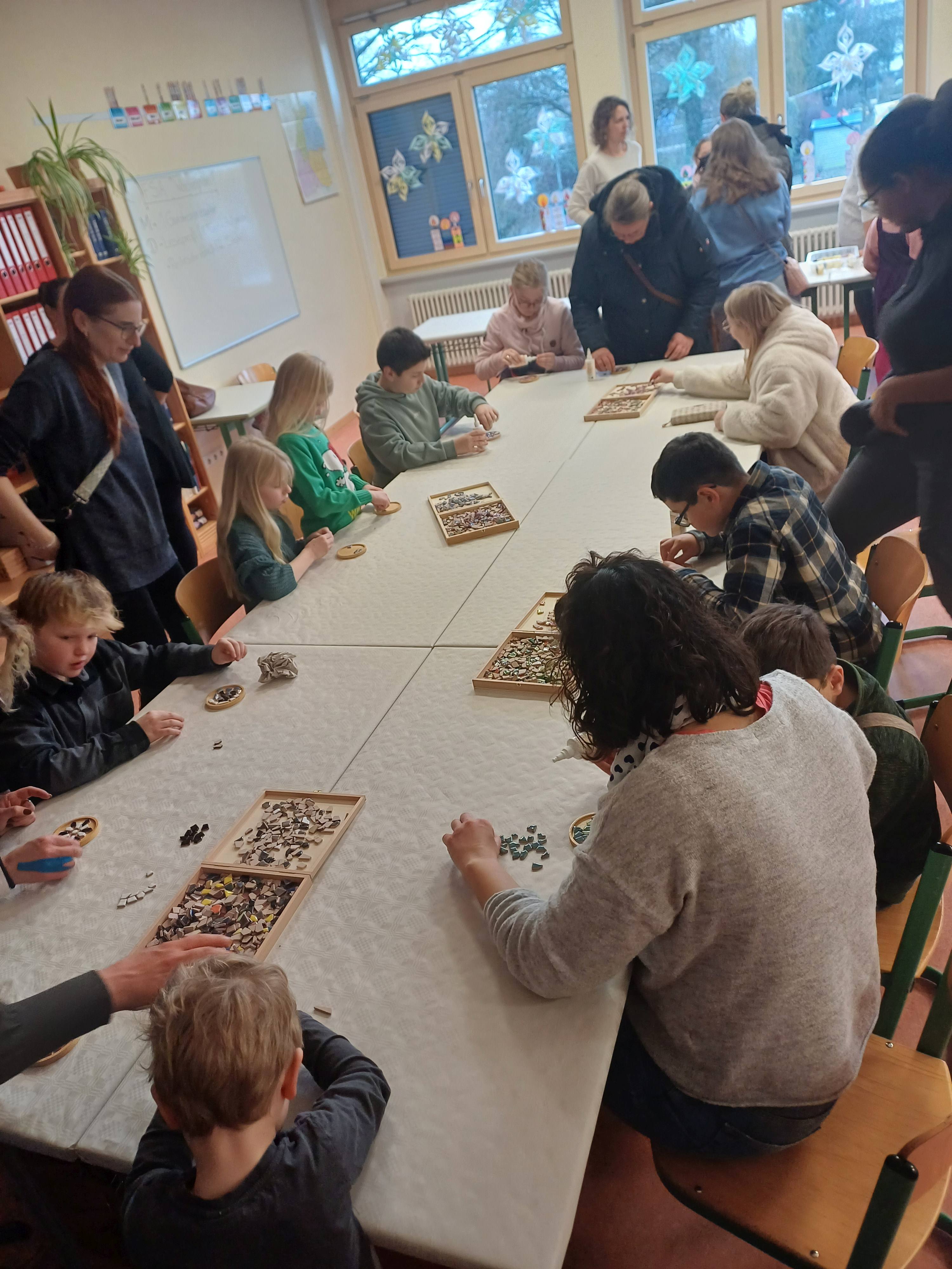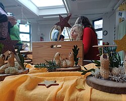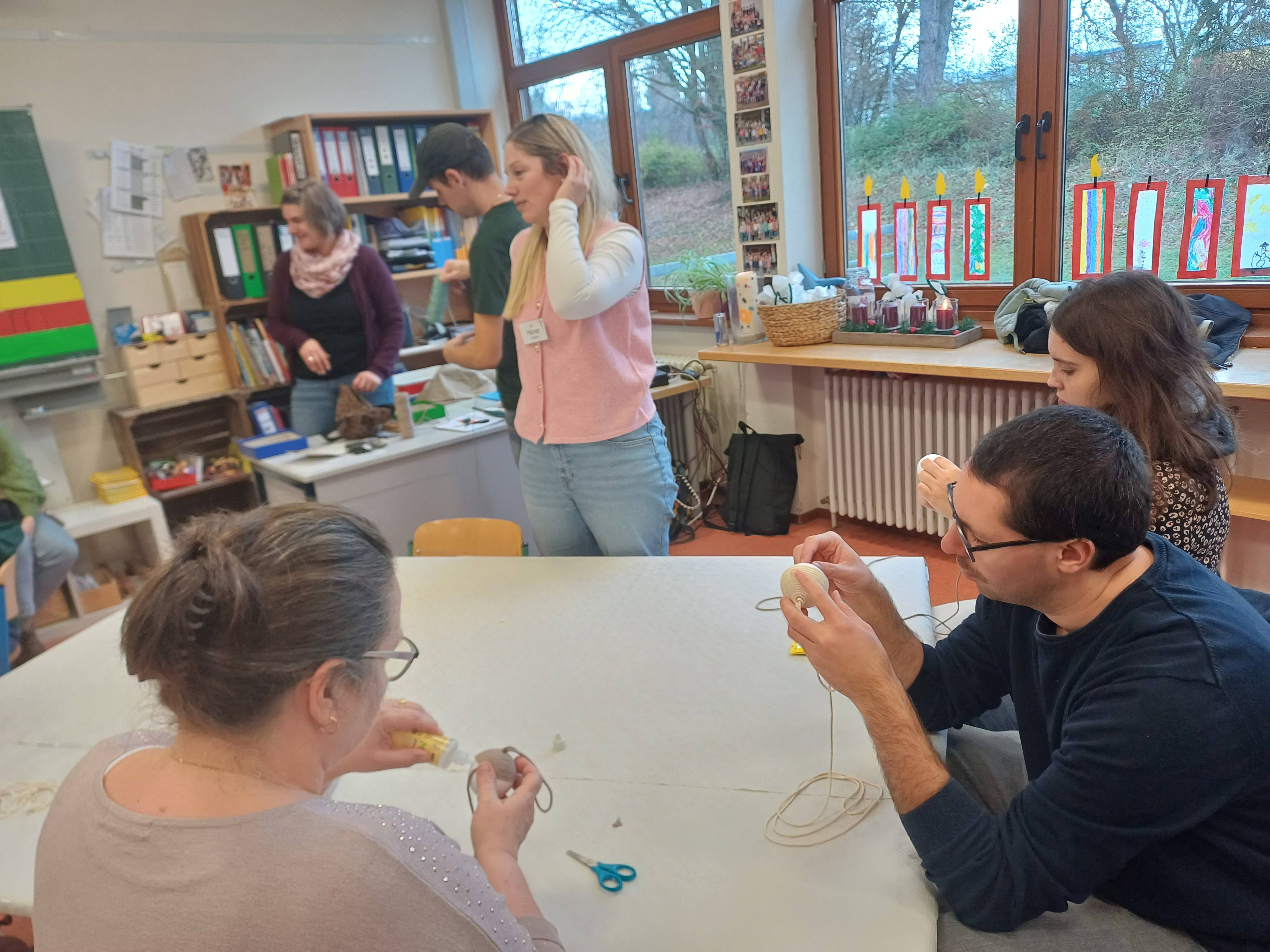 Nach dem Gottesdienst öffneten die Rupert-Mayer-Schule und der Kindergarten die Türen. In den Klassenzimmern der Stufe 1 bis 6 warteten kreative und liebevoll vorbereitete Mitmachangebote: Makramee-Engel, bemalte Glaskugeln, Bienenwachskerzen, Perlensterne, Krippen aus Erdnüssen, Drahttannenbäume, Schneeflocken, Kerzenfärben, selbstgemachtes Badesalz oder bunte Mosaikuntersetzer – Kinder und Erwachsene konnten ihrer Fantasie freien Lauf lassen. Für die Jüngsten gab es Kinderbetreuung, für Leseratten einen Bücherflohmarkt.