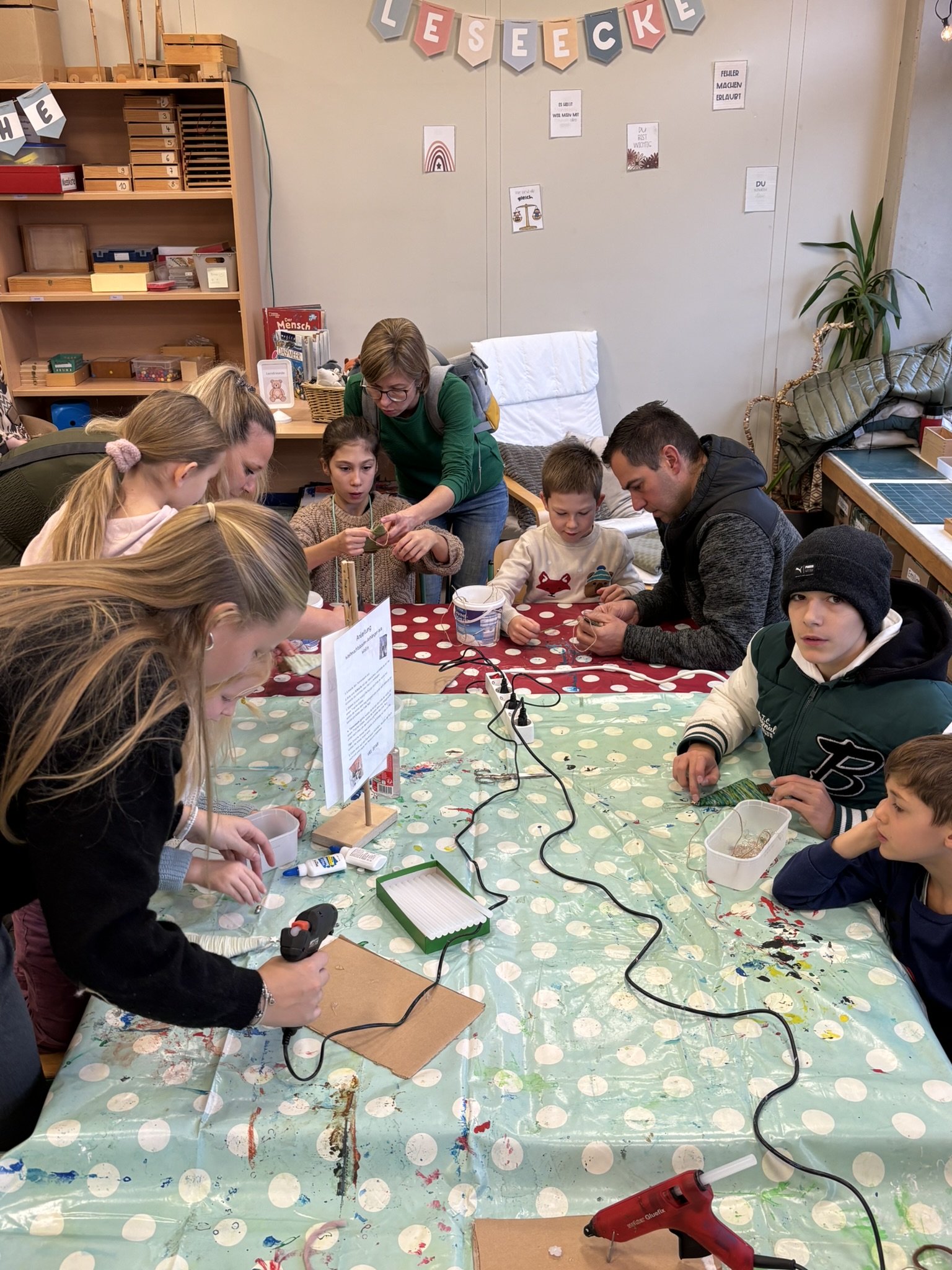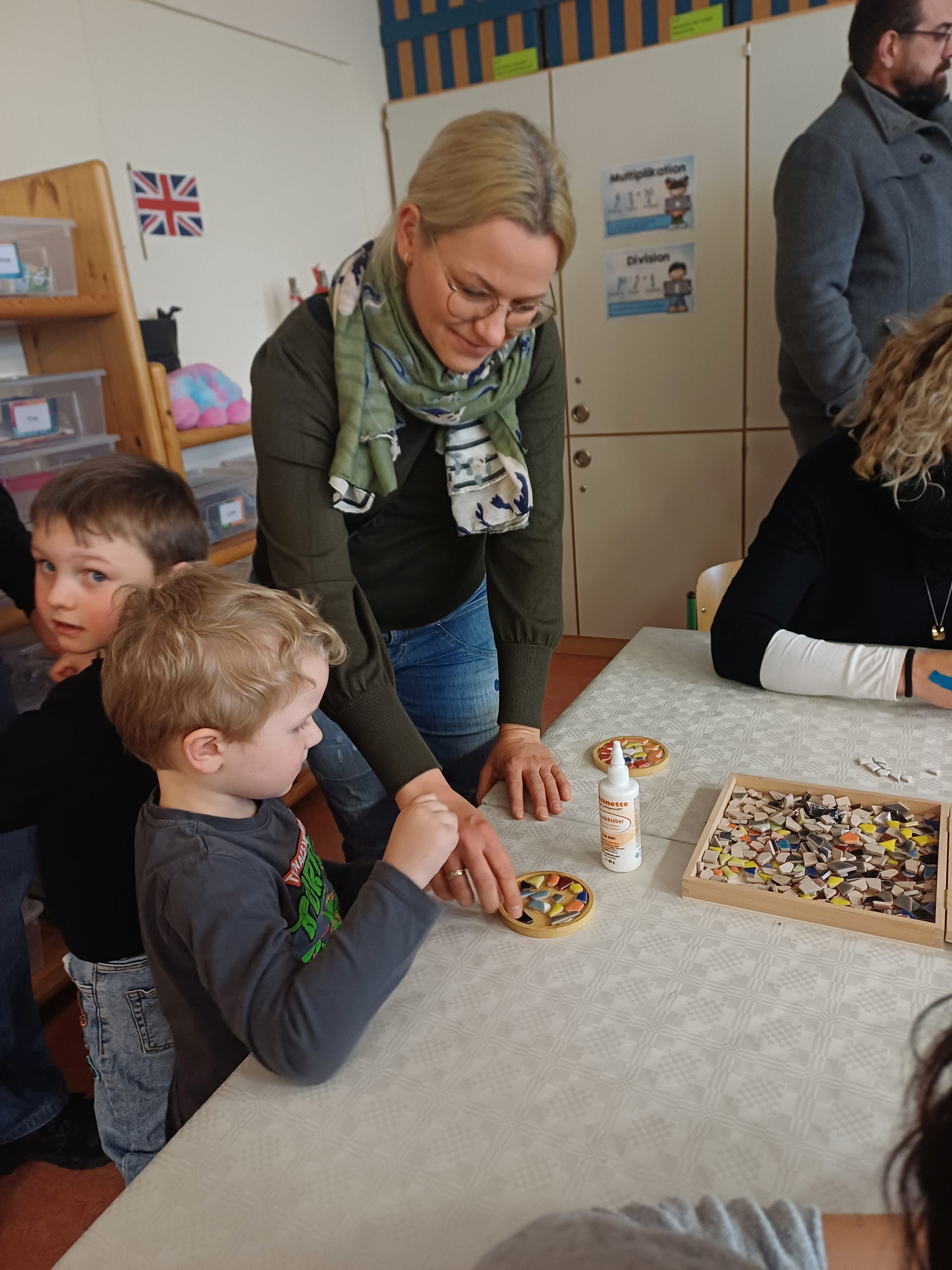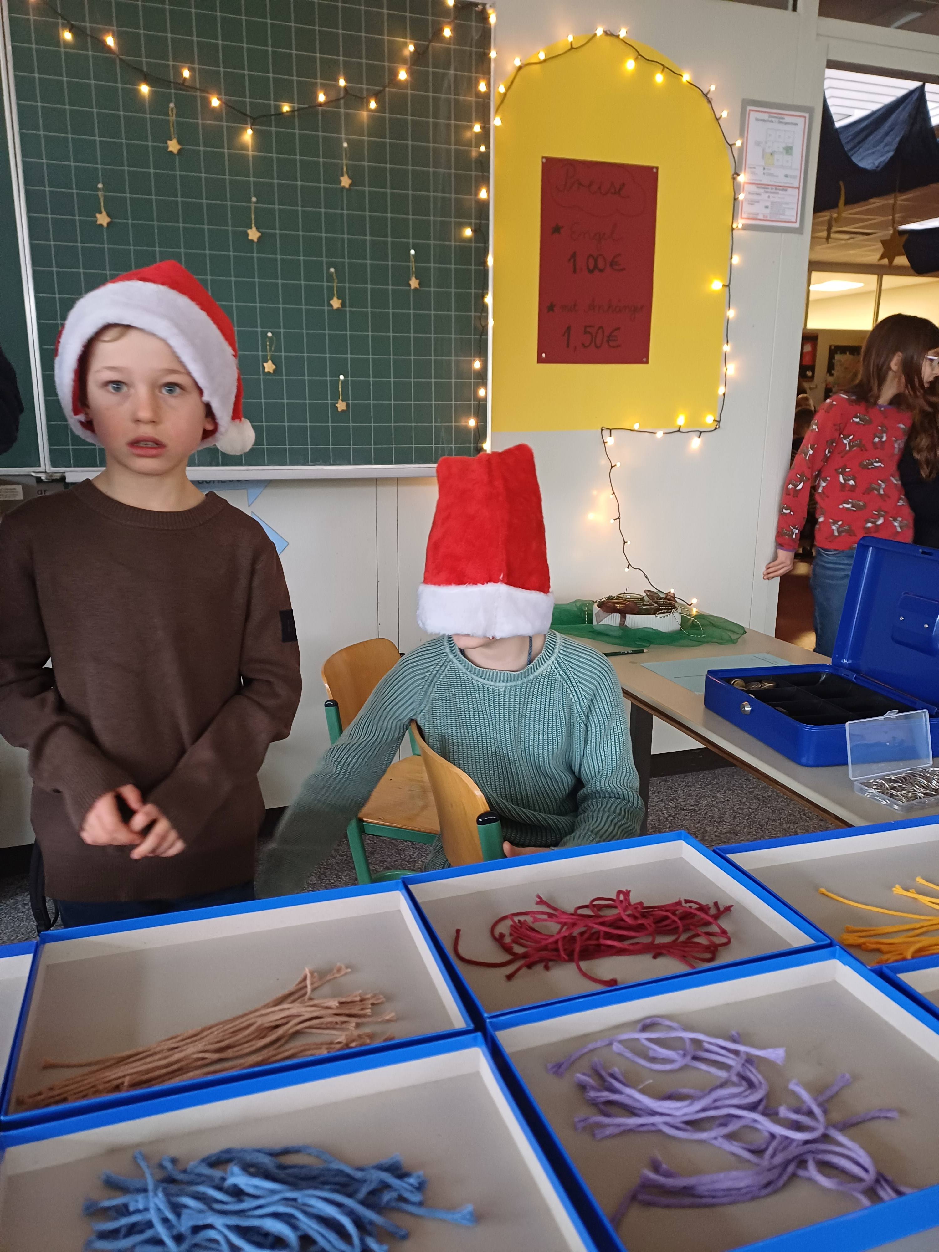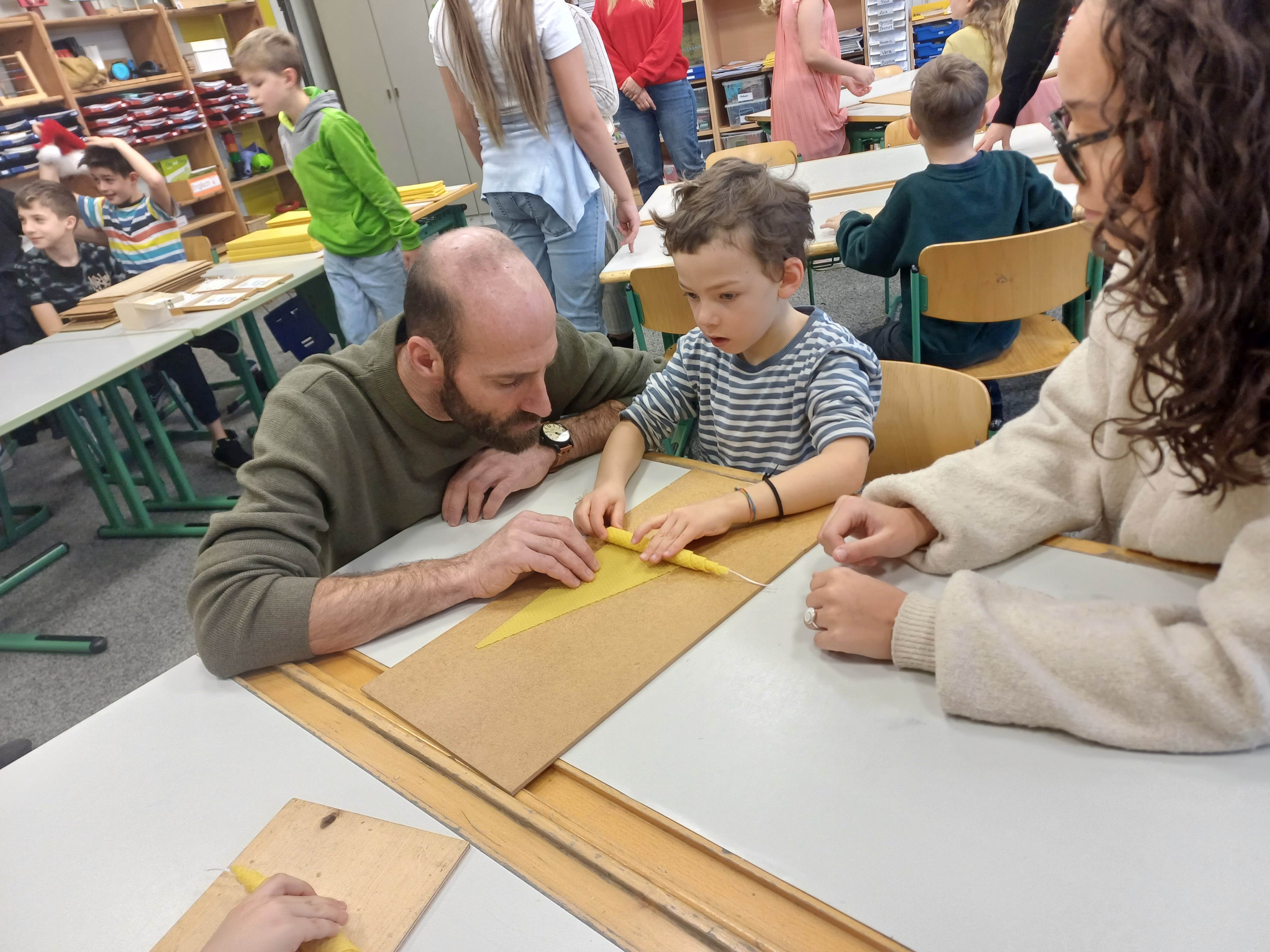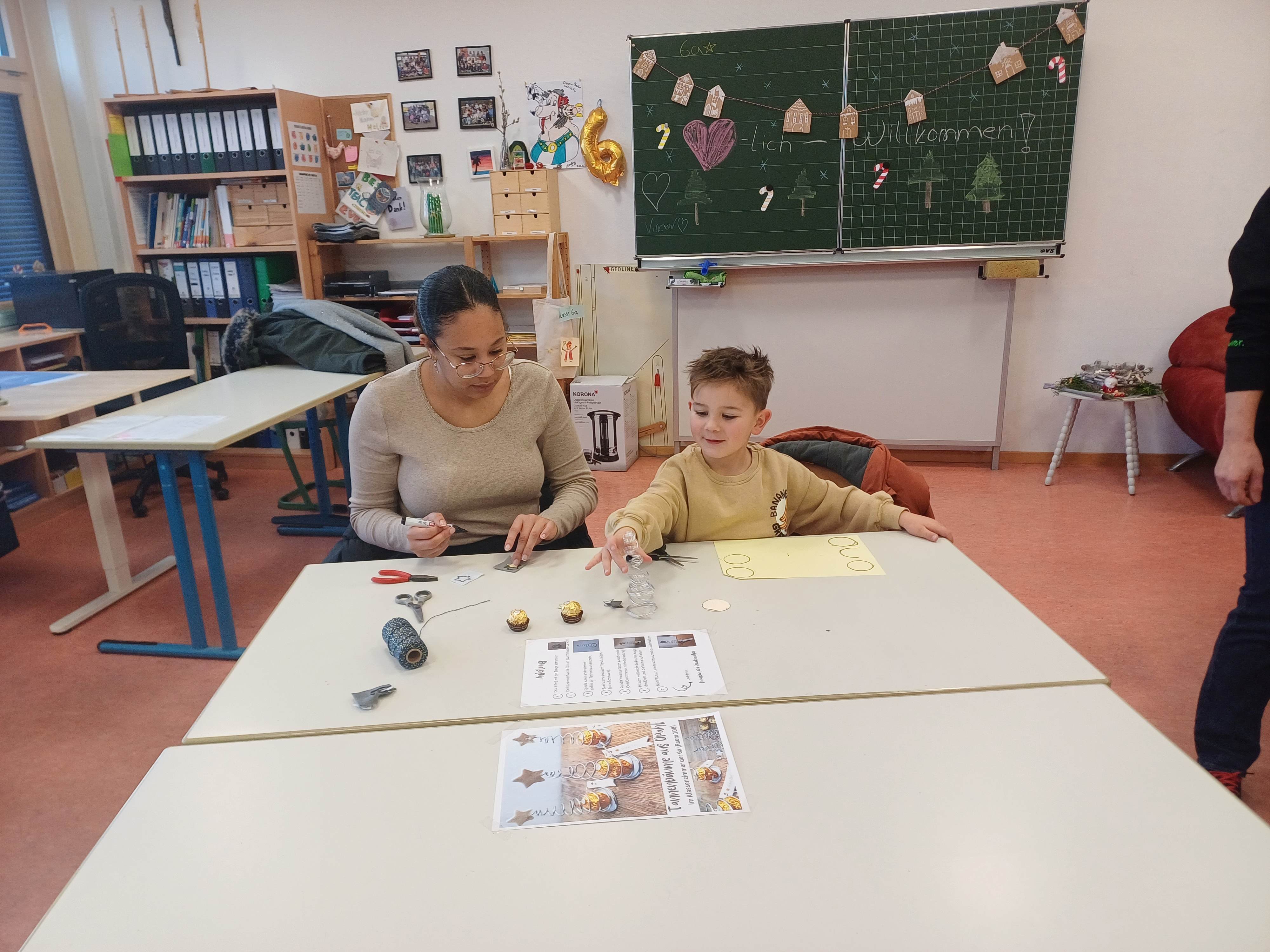 Nach dem Gottesdienst öffneten die Rupert-Mayer-Schule und der Kindergarten die Türen. In den Klassenzimmern der Stufe 1 bis 6 warteten kreative und liebevoll vorbereitete Mitmachangebote: Makramee-Engel, bemalte Glaskugeln, Bienenwachskerzen, Perlensterne, Krippen aus Erdnüssen, Drahttannenbäume, Schneeflocken, Kerzenfärben, selbstgemachtes Badesalz oder bunte Mosaikuntersetzer – Kinder und Erwachsene konnten ihrer Fantasie freien Lauf lassen. Für die Jüngsten gab es Kinderbetreuung, für Leseratten einen Bücherflohmarkt.