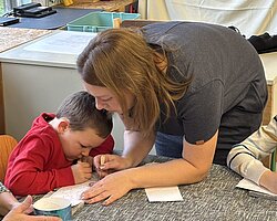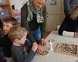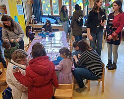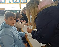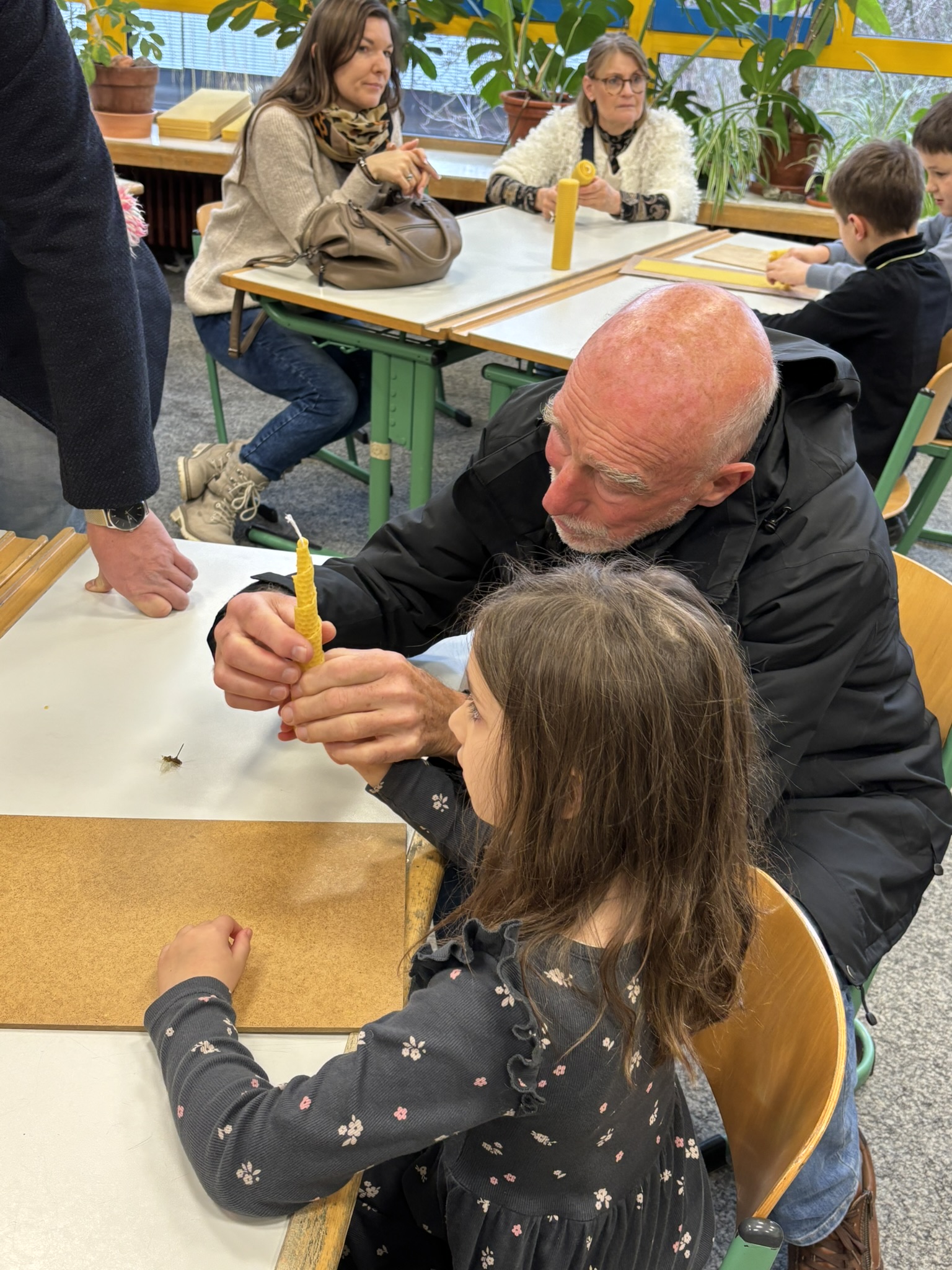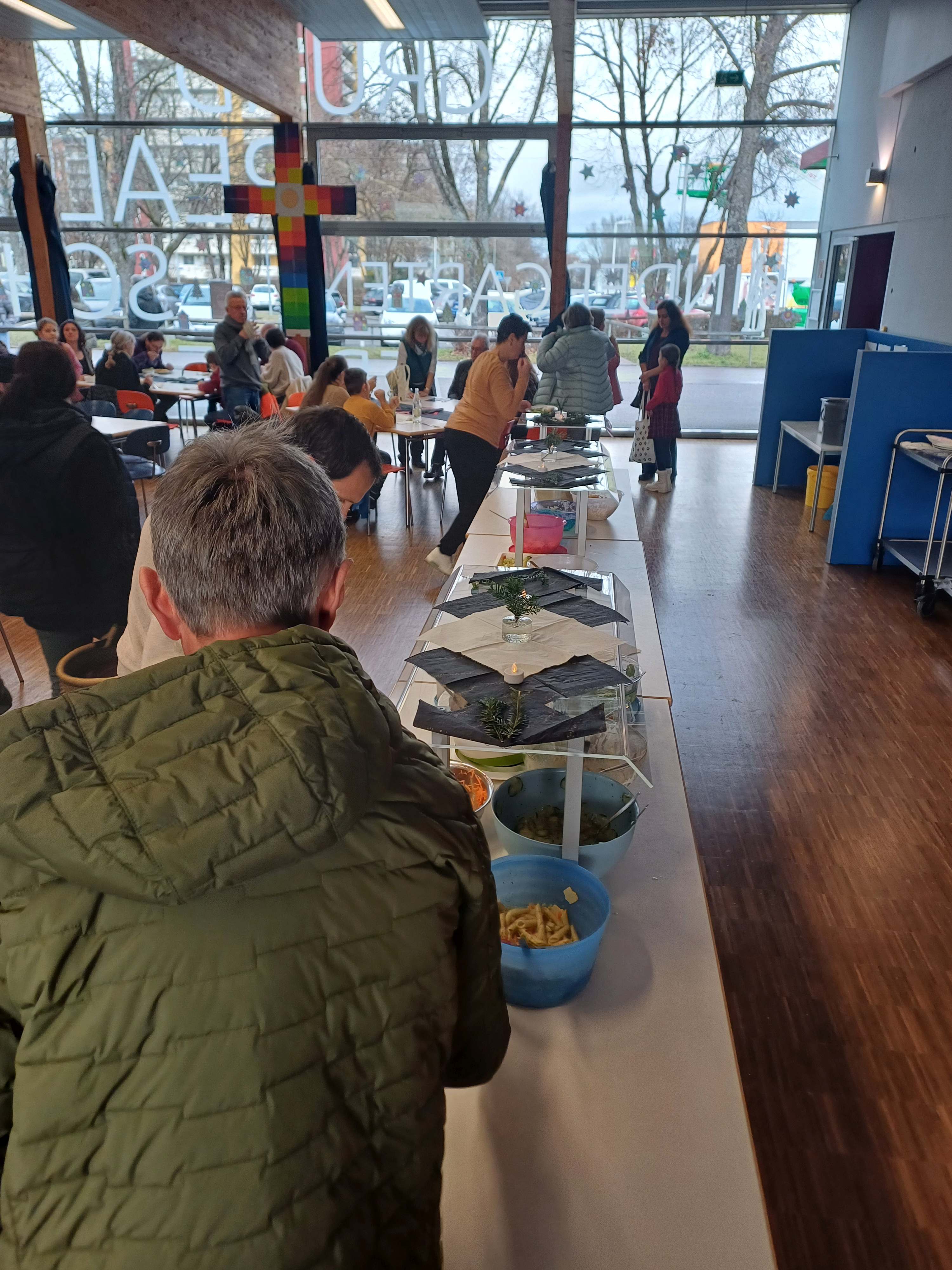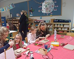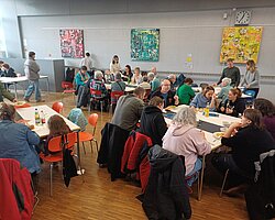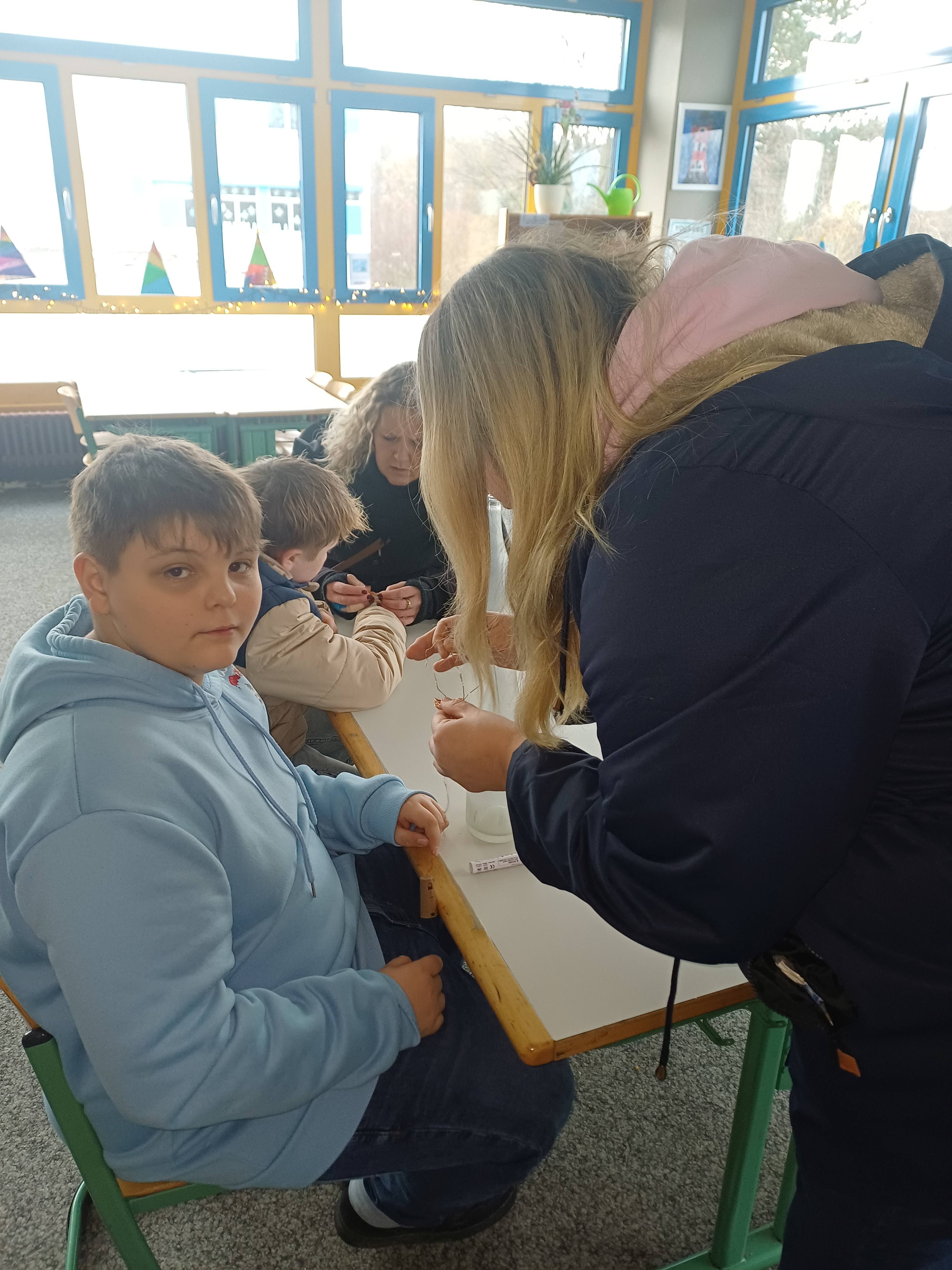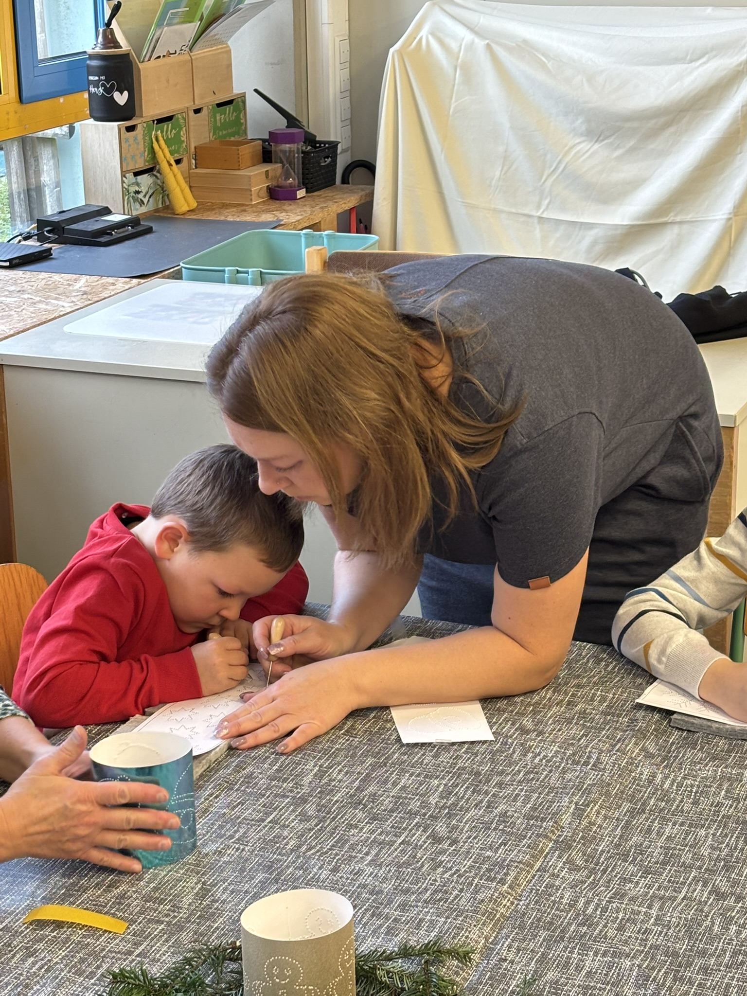 Nach dem Gottesdienst öffneten die Rupert-Mayer-Schule und der Kindergarten die Türen. In den Klassenzimmern der Stufe 1 bis 6 warteten kreative und liebevoll vorbereitete Mitmachangebote: Makramee-Engel, bemalte Glaskugeln, Bienenwachskerzen, Perlensterne, Krippen aus Erdnüssen, Drahttannenbäume, Schneeflocken, Kerzenfärben, selbstgemachtes Badesalz oder bunte Mosaikuntersetzer – Kinder und Erwachsene konnten ihrer Fantasie freien Lauf lassen. Für die Jüngsten gab es Kinderbetreuung, für Leseratten einen Bücherflohmarkt.