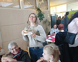 Neben dem Bastel- und Bühnenprogramm überzeugte auch das kulinarische Angebot: Von Kuchen, Brezeln und belegten Wecken über Schupfnudeln und Mittagessen à la carte bis hin zu frisch gebackenen Waffeln boten die einzelnen Stationen für jeden Geschmack etwas Passendes. Das Vesperstüble und die Cafeteria sorgten ebenfalls dafür, dass niemand hungrig blieb.