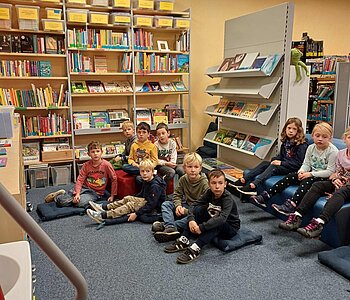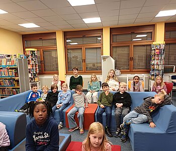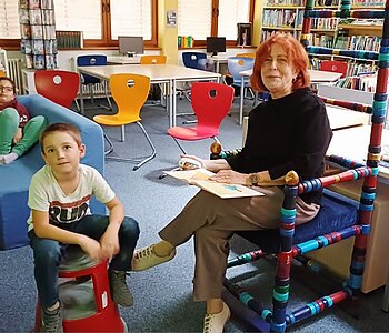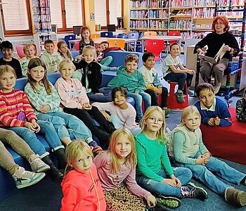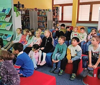 Zum Fredericktag gab es in der Mediathek wieder eine Vorlesewoche mit Bilderbuchkinos für alle Erst- und Zweitklässler. Wie immer wurde Kornelia Hörburger dabei von „Leseratte Susi“ unterstützt. Nach dem ersten Bilderbuch forderten die Schüler spontan weitere Zugaben.