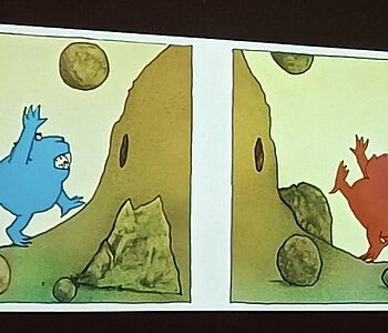 Martin Baltscheits „Löwe, der nicht schreiben konnte“, führte den Schulanfängern die Vorzüge des Lesens vor. Von Lorenz Paulis Bibliotheksmaus erfuhren sie, wie eine „Pippilothek“ auf wundersame Weise Freundschaften stiften kann. Und wie unterschiedlich Streit enden kann, erlebten die Kinder mit David McKees „Du hast angefangen“ und Kathrin Schärers „So war das, nein so!“.