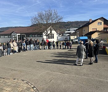 Bei der offiziellen Übergabe waren Tatjana Hänssler, Leiterin der Geschäftsstelle der Stiftung, Rolf Engesser, Vorstand der Stiftung, sowie Frau Sabine Zepf, ebenfalls von der Gerhard-Winker Stiftung vertreten. Nach kurzen Dankesworten durch die Schulleiterin Patricia Staron, überraschten die beiden Schülersprecherinnen Julia Szuber und Sonja Kremer die Gäste mit einer Dankesrede im Namen der Schülerschaft und überreichten ihnen einen kleinen Blumengruß und Merci Schokolade.