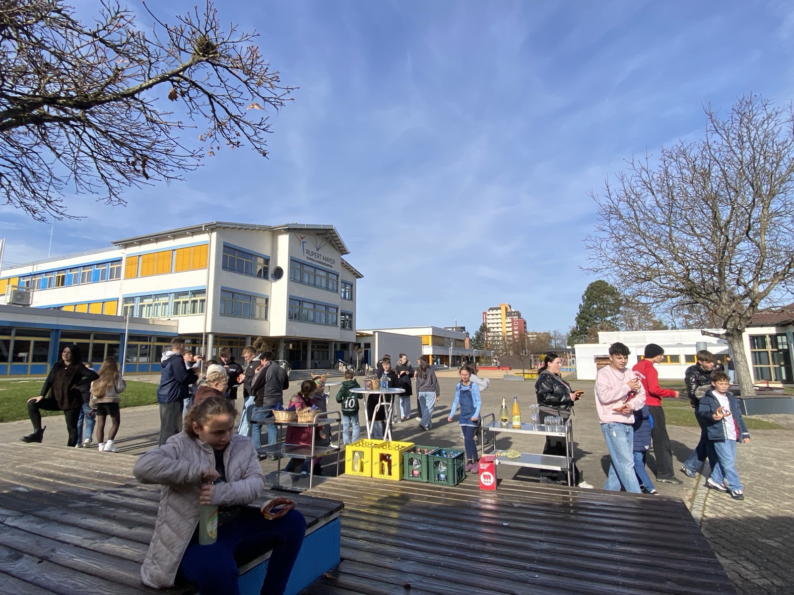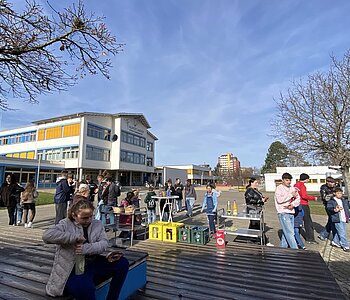 Nach den Reden der Gäste und Vertreterinnen der Schule gab es einen kurzen Empfang zum Anstoßen auf die neuen Geräte. Die Schulleitung, die Klassensprecherinnen und -sprecher sowie die Gäste zeigten sich begeistert von dem Beitrag, der den Pausenhof zu einem attraktiven Lern- und Bewegungsraum erweitert.